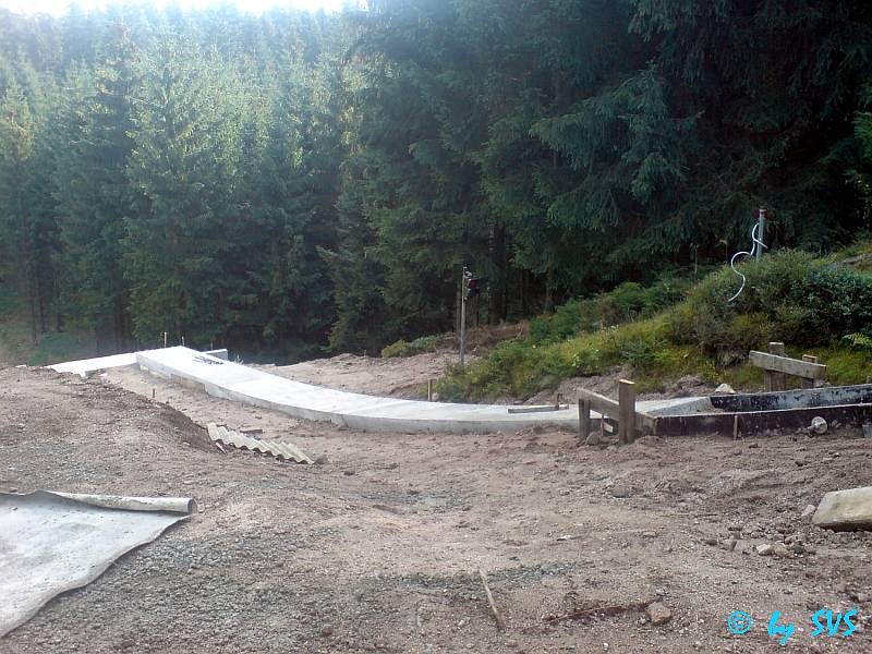 mit den Sanierungsarbeiten an der Schanze begonnen werden. So wurde mit einigen Korrekturen am Radius begonnen, um mit dem Verlegen von Wabenplatten beginnen zu können. Desweiteren waren vorher auch noch einige Arbeiten an der Entwässerung des Auslaufbereis erforderlich.