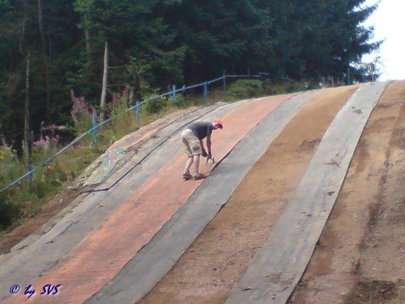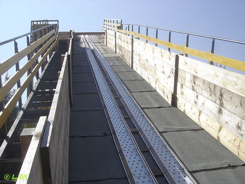 Kleinstschanze aussortiert. Weiterhin wurde die unter dem Mattenbelag befindliche Lage aus Gummibahnen, und die seitlichen