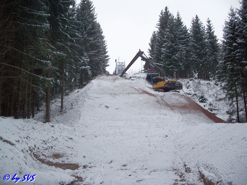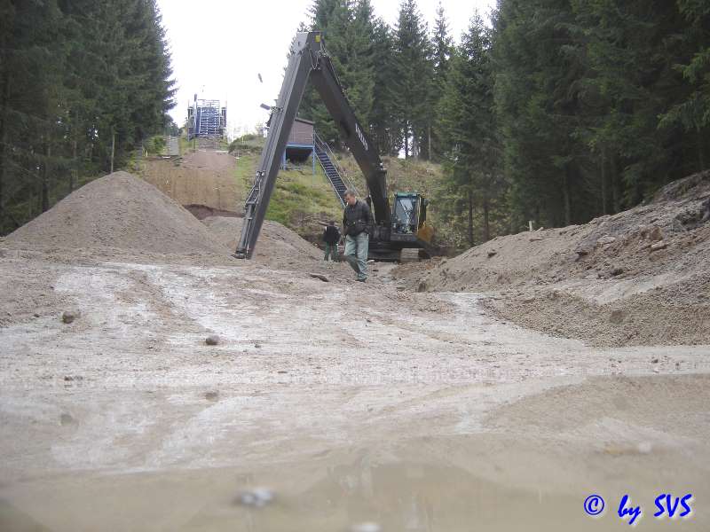 Mit Ünterstützung der Gemeinde Schönheide konnte auch der Auslaufbereich für die K8 Schanze mit Bagger und Radlader in Form gebracht werden.