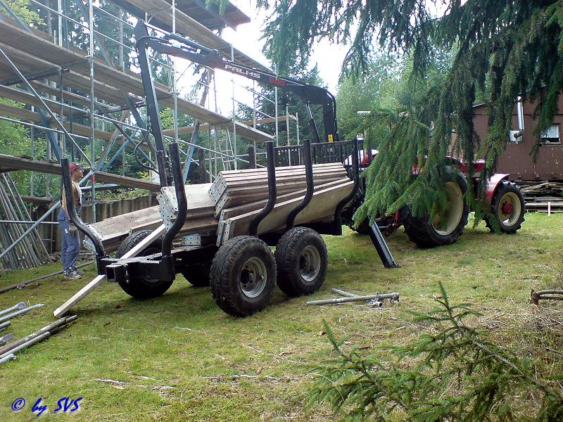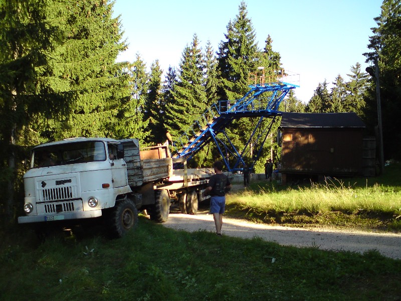 Am 09.08. konnte auch das Gerüst mit schwerer Technik zum Schanzenturm transportiert werden, da eine Anfahrt zum