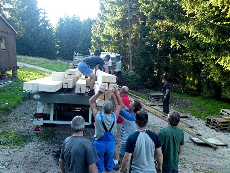 Tischlerei Schröder angefertigt, und diese mit Unterstützung der Fa. Döhler und tatkräftige Mitglieder zur Schanze transportiert.